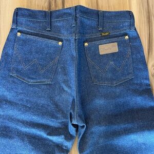 SOLD!!!! Brand New without tags. You can see on the pocket where the plastic holder from the retail tag is still there. These are the iconic vintage 13MWZ Wrangler jeans men have been wearing with their boots for decades!