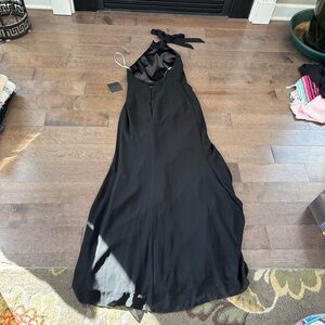 Chic black backless dress. Perfect for evening elegance. Sleek and stylish.