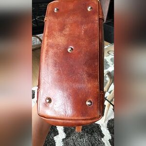 Elegant Marino Orlandi shoulder bag. Crafted in chestnut leather. Features a sleek design with gold accents.