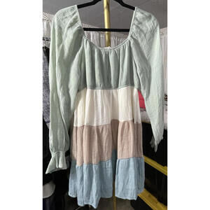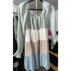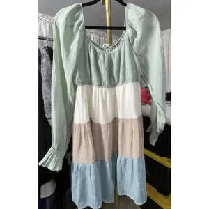 The Sweet Wanderer Women's Tiered Dress in size XL is a charming and versatile piece perfect for casual or travel occasions. Featuring a square neckline, long balloon sleeves, and a colorful colorblock pattern, this knee-length dress exudes a relaxed and bohemian vibe. Constructed from a lightweight woven fabric, this dress is lined and comfortable to wear in the warmer seasons of summer, fall, or spring. The ruffle accents and layered details add a touch of femininity and whimsy, making it ideal for a fairy-inspired or prairie-style aesthetic.