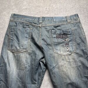 Step into early 2000s hip hop fashion with these vintage Pelle Pelle jeans. Featuring oversized back pocket embroidery, a true wide-leg cut, and heavyweight 100% cotton denim, these are the real deal for collectors and Y2K style fans.