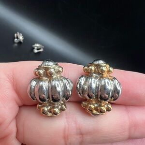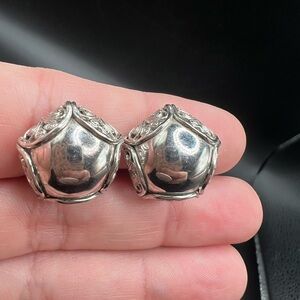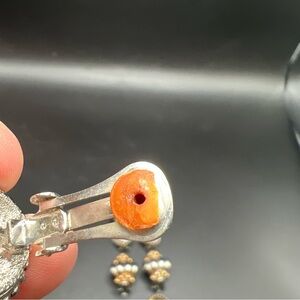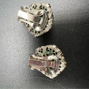 Pair with cushions will need to be removed and or replaced as they have dried. Earrings will need to be cleaned at buyers discretion