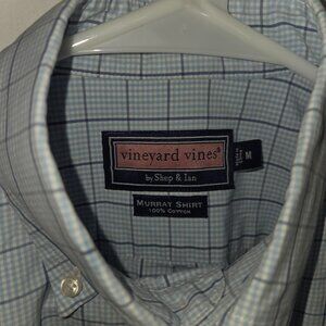 The Vineyard Vines Blue Checkered Murray Button-down Collared Shirt in Men's Size M is a stylish and versatile addition to any man's wardrobe. Made from comfortable cotton with a regular fit, this shirt features a classic blue plaid pattern, long sleeves, and a button-up closure. The collared neckline adds a touch of sophistication, making it suitable for casual occasions during the winter season.