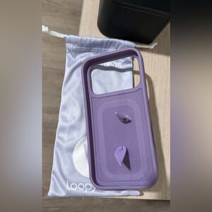 Stylish purple phone case with a convenient grip for secure handling. Perfect for enhancing your phone's look and functionality.