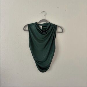 Super cute Maeve by Anthropologie shimmery forest green ruched sleeveless mock neck top !!!