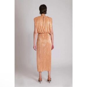 NWT Sabina Musayev Galia Skirt Metallic Plisse Draped Side Knot in Peach Small