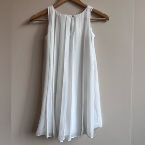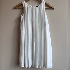 Style: Sleeveless, flowy A-line silhouette featuring vertical pintuck pleats down the front