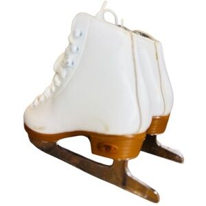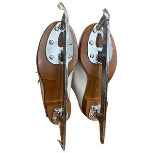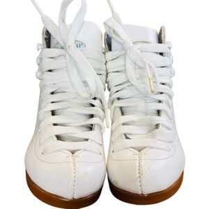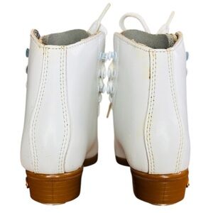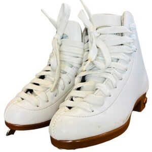 Riedel brand kids (toddler girl) lace up ice skates with a sleek white design and brown accents. Ideal for skating enthusiasts. Made in USA.