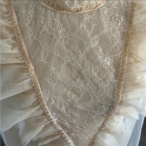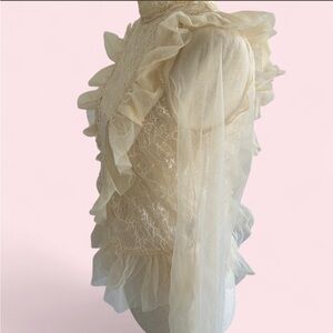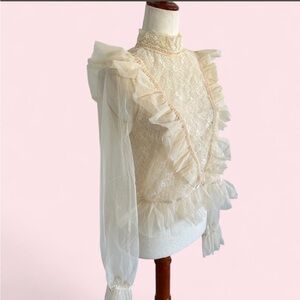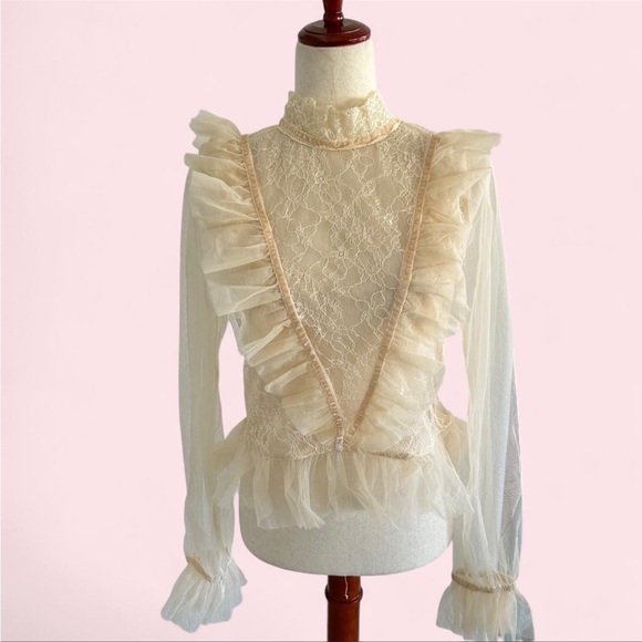 Widow Cream Lace Victorian Ruffle Blouse – Sheer Gothic High Neck Top (L)