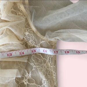 The lace overlay gives texture and structure, while the sheer sleeves keep it soft and floaty