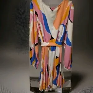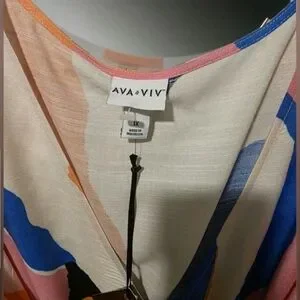 NWT Ava & Viv Women's Balloon Long Sleeve Abstract Woven Dress with side pockets Sz 1x