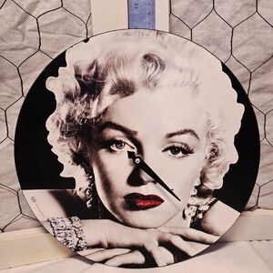 Design: The clock features a classic black and white portrait of actress Marilyn Monroe, highlighted with her signature red lipstick.