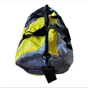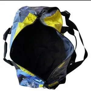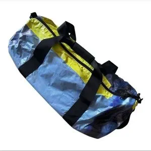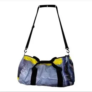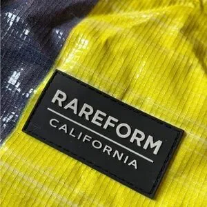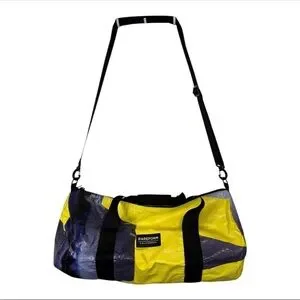 Stylish and durable Rareform California unisex duffel bag features a vibrant yellow and blue design. Perfect for travel or gym use, this bag combines functionality with a bold look. Size OS