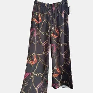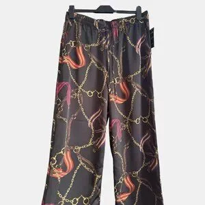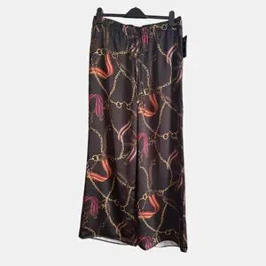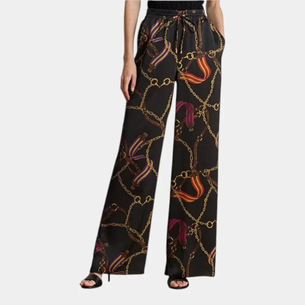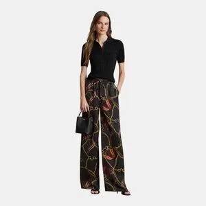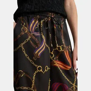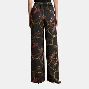 LAUREN RALPH LAUREN BELTING PRINT CHARMEUSE WIDE LEG PANTS NWT SIZE PL