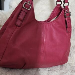 Chic fuchsia leather bag by Coach. Stylish and versatile for any outfit.