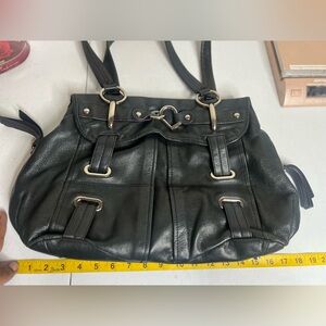 B Makowsky Large Black Genuine Pebbled Leather Boho Handbag Tote Y2K Style