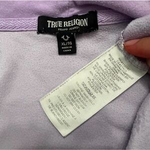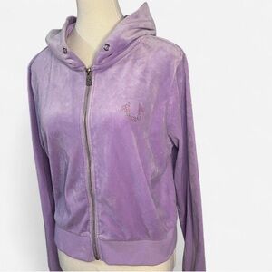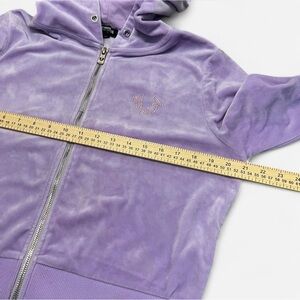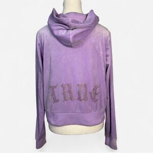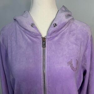 True Religion Purple velvet zip up hoodie with bling “True” wording in the back