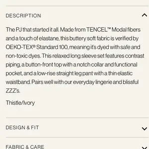The PJ that started it all. Made from TENCEL™ Modal fibers and a touch of elastane, this buttery soft fabric is verified by OEKO-TEX® Standard 100, meaning it’s dyed with safe and non-toxic dyes. This relaxed long sleeve set features contrast piping, a button-front top with a notch collar and functional pocket, and a low-rise straight leg pant with a thin elastic waistband. Pairs well with our everyday lingerie and blissful ZZZ’s.