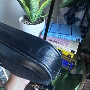 Chic black shoulder bag with iconic Gucci monogram. Stylish and versatile for any outfit.
