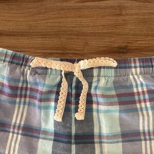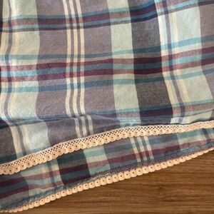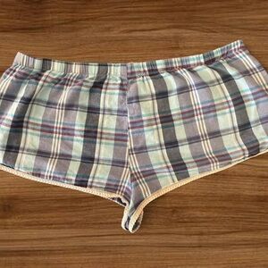 Vintage Lei blue plaid shorts with lace trim and decorative bow waistband. Size: XL but could fit smaller. Note: they are Booty shorts. Very short! In great condition #loungewear #sleepwear