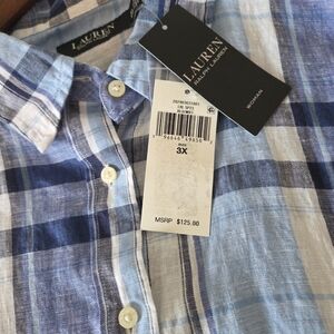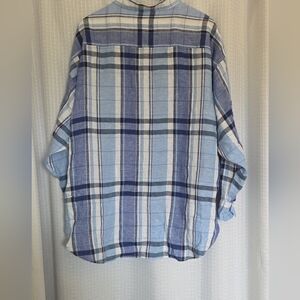 This Lauren Ralph Lauren Women's Blue Plaid Linen Shirt in size 3X is a stylish and classy addition to any spring wardrobe.