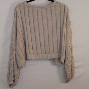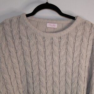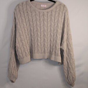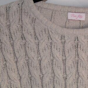 The Pink Lily beige/tan long-sleeve crew neck chunky cable knit cropped sweater in size L is a stylish and versatile addition to any woman's wardrobe. Made from polyester and featuring a solid color with a cable-knit design, this pullover sweater is perfect for adding a touch of warmth and texture to any outfit. The crew neck and long sleeves provide a classic and comfortable look, while the cropped style adds a trendy twist.