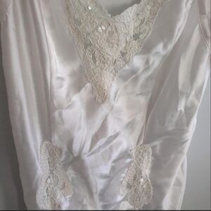 90s vintage nightie with lace accents and sheer skirt panels. Would suit as a bridal nightie.