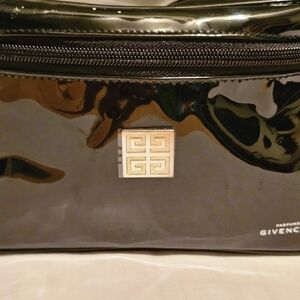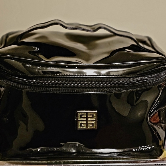 Givenchy Perfum Large Black Patent Train Case Zip Makeup Cosmetic Bag Organizer GENTLY PRE-OWNED.