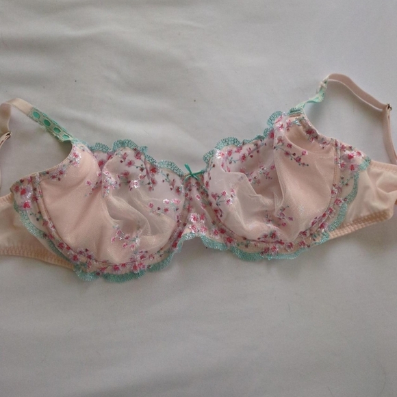 Pink and blue lace demi bra from Victoria's Secret. NWOT. 38DD. Semi lined. Never worn.