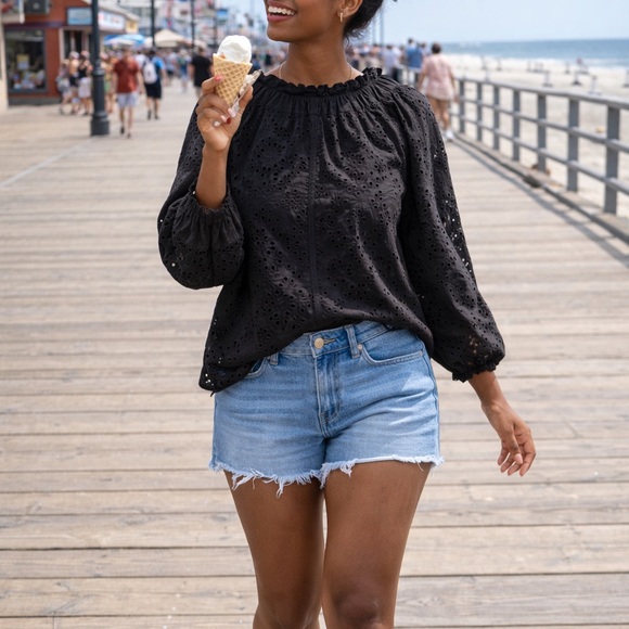 🖤 Jennifer & Grace Black Eyelet Blouse – Size Small