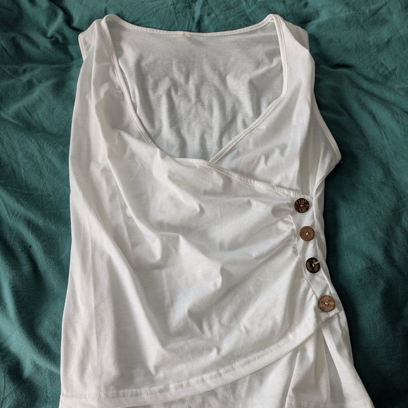 NWOT, never worn. White top featuring button details. Size XL.