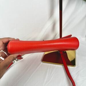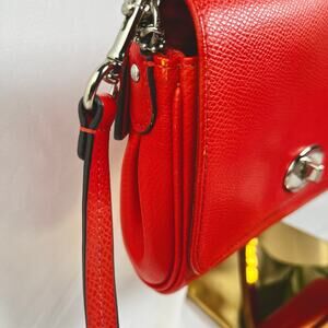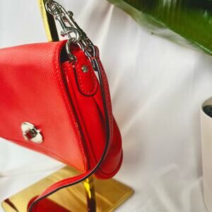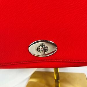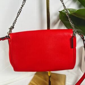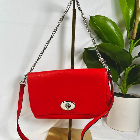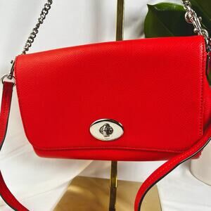 ♡ Coach Pebbled Leather Turnlock Chain Crossbody Bag – Red Orange with Silver Hardware ♡