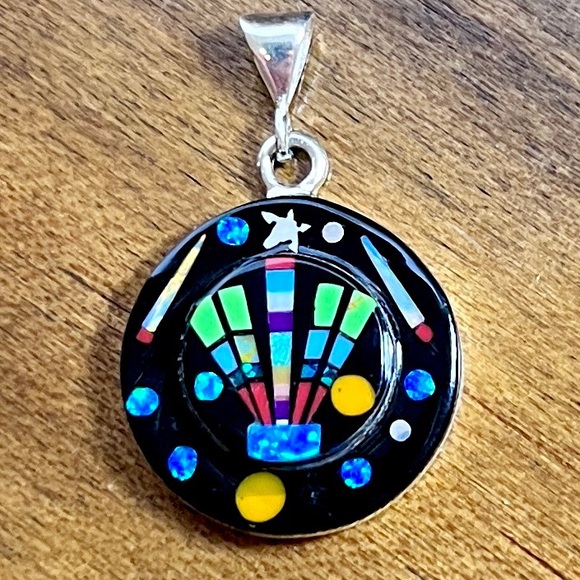 Native American Galaxy Multi Stone Micro Inlay Pendant Sterling Silver