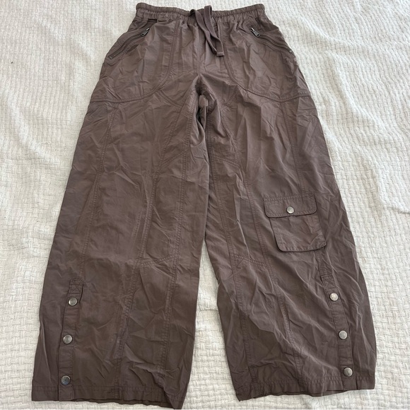 FP Movement wide leg cargo pants nylon track pants Y2K sporty model off duty athleisure brown size M.