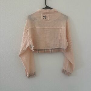 Chic peach top with a textured design. Perfect for casual wear.