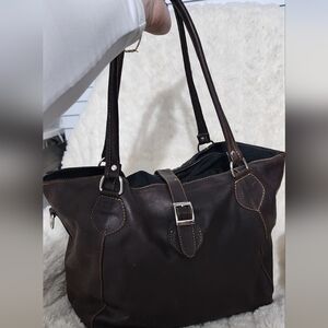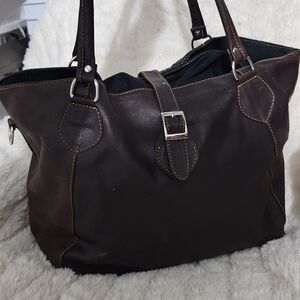 This stylish brown leather tote bag is perfect for any occasion. Its elegant design and durable material make it a must-have accessory. genuine leather insade and outside.