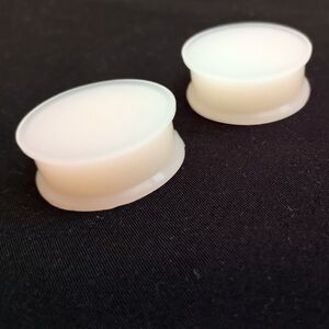 Solid silicone light fair skinned flesh colored double flared plugs size 1 inch or 25 millimeters in diameter