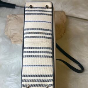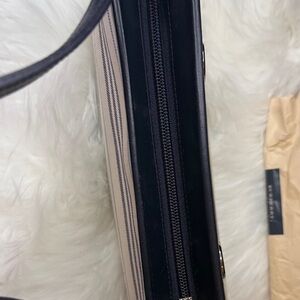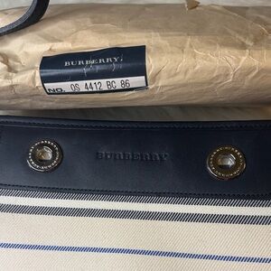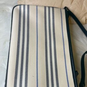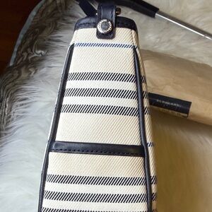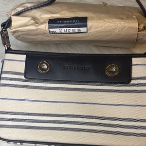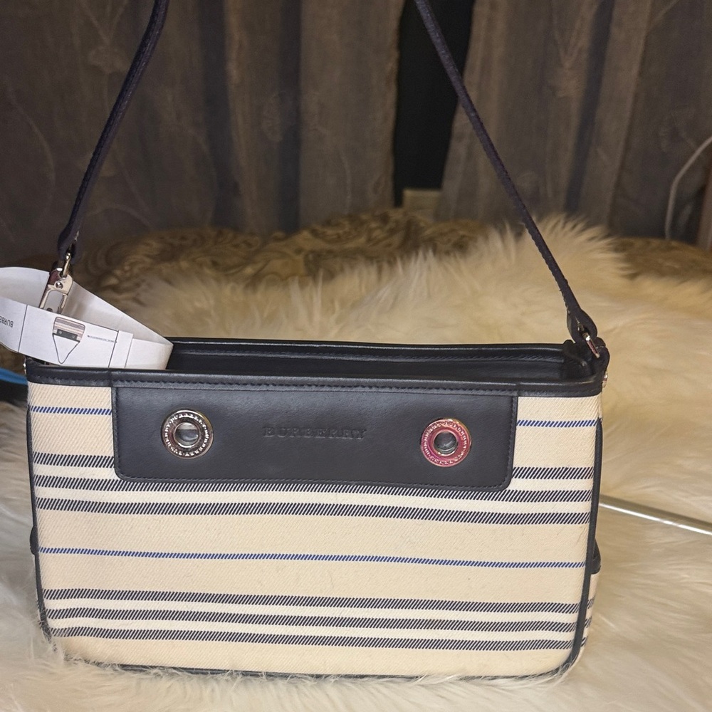 Stylish Burberry shoulder bag with black and cream stripes. Perfect for any occasion. Elegant and versatile design.
