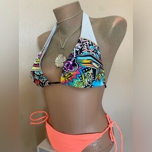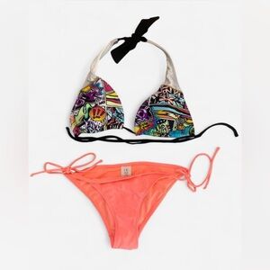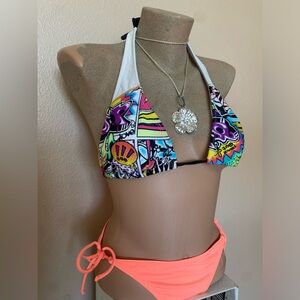 In great condition. Top is y2k - tagged a medium but fits a small as well & has removable padding, bottoms are newer Op , tagged a small. So many cute details on this top!!