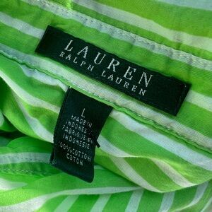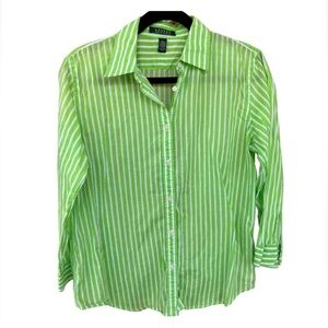 Ralph Lauren Women's Lightweight Neon Green Striped Shirt in a Size Large. 100% cotton.