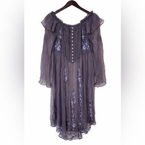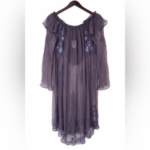 Chic off-shoulder design. Sheer long sleeves. Intricate floral details. Ideal for versatile styling.