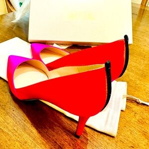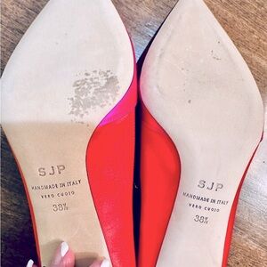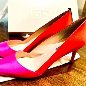 SJP NEW IN BOX Step out in style with these vibrant colors of Pink and Orange women's heels. Perfect for adding a pop of color to any outfit by SJP. They have SJP’s Signature Grosgrain Signature Stripe They’re Brand New includes original dust bag and box. Made of genuine leather! SJP runs TTS I wear a 7.5 but bought these too large. Should’ve bought Size 8 Missed the return