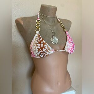 In great condition! Tagged an xsmall, fits true to size, can also fit a small but triangles will have less coverage. Dated 2009. Has removable padding. The perfect top to wear if you want to be turning heads at the beach all spring break! : P