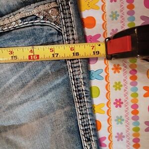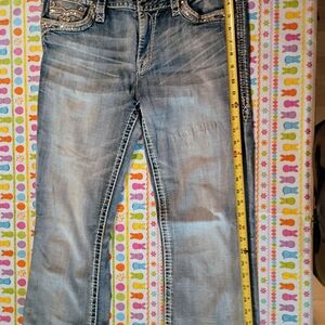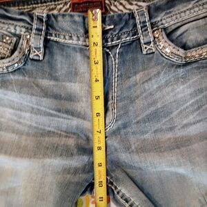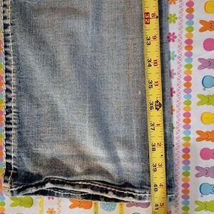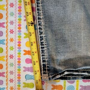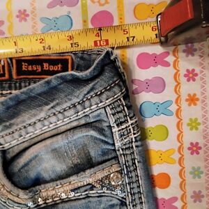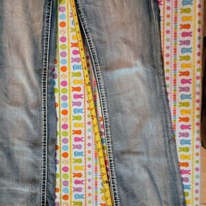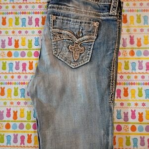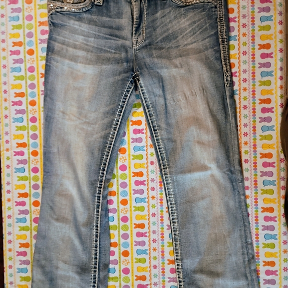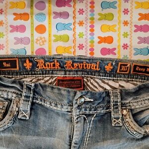 Stylish and comfortable women's rock revival blue jeans perfect for any casual occasion. Enjoy a classic look with a modern fit. slight extra stretched part of jeans on the upper thigh of jeans. It's shown in pics but not even noticable.