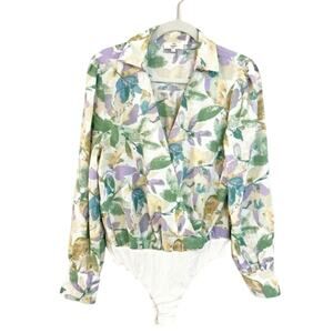 Floral Long Sleeve Wrap Front Collared Bodysuit