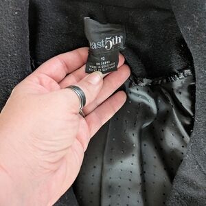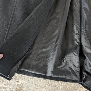 Black long wool-type coat with a business style. Size: 10