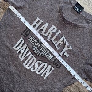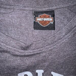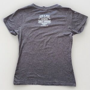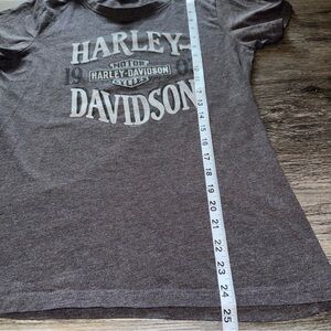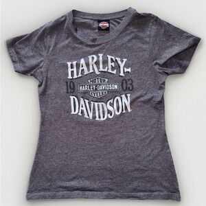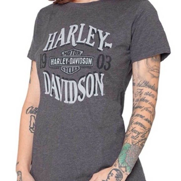 Harley-Davidson Women's Gray Short Sleeve Crew-Neck Tee in size Medium is a classic and comfortable t-shirt perfect for casual occasions. Made from a soft cotton blend material, this tee features a solid gray color with a crew neck and pullover closure. The iconic Harley-Davidson brand adds a stylish touch to this basic tee, making it a versatile wardrobe staple for the summer, fall, or spring seasons. Perfect for travel or everyday wear, this tee is easy to care for with machine washable instructions.