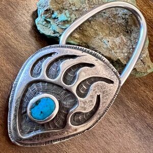 Native American Bear Claws Turquoise Vintage Sterling Silver Key Chain