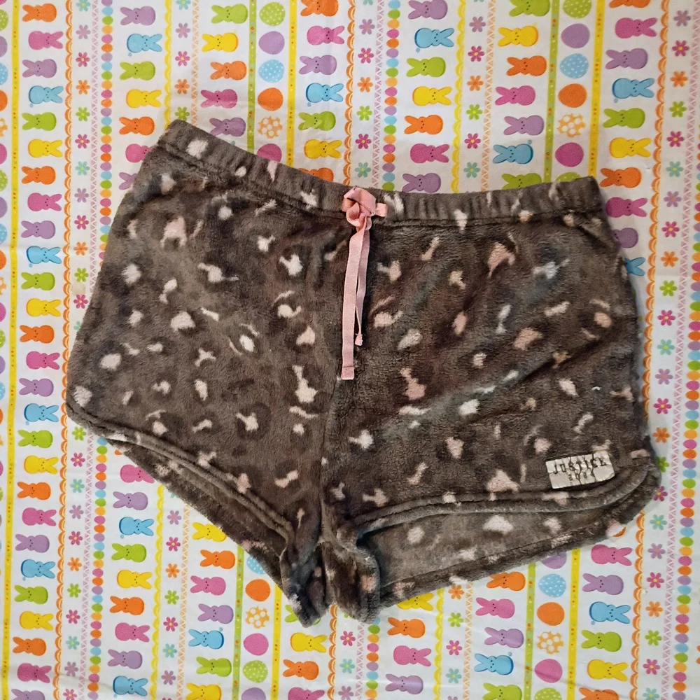 Plush fleece shorts with subtle pattern. Comfortable and cozy.