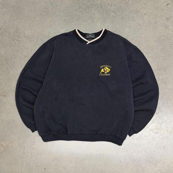 Vintage 90s Antigua Black, Tan, and Yellow Colorado Buffaloes Embroidered Logo V-Neck Sweatshirt